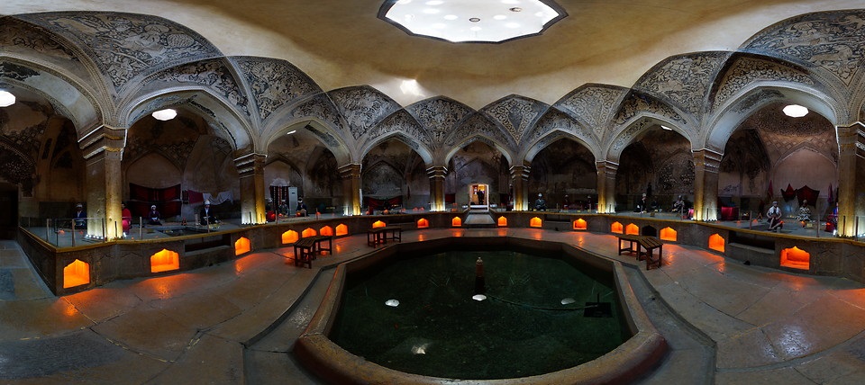 The 18th-century Karim Khan citadel stands in the center of Shiraz. Inside there are residential quarters, baths and a courtyard filled with citrus trees. Outside, Persian-style crenelated walls are decorated with beautiful paintings and miniatures. "The unique architecture, lighting and patterns presented in the Iranian baths catches the eye at first glance," says Ganji.